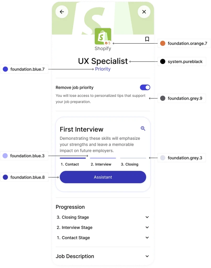This allows each job opportunity to feel unique and personalized, while maintaining a consistent system that scales across the app.